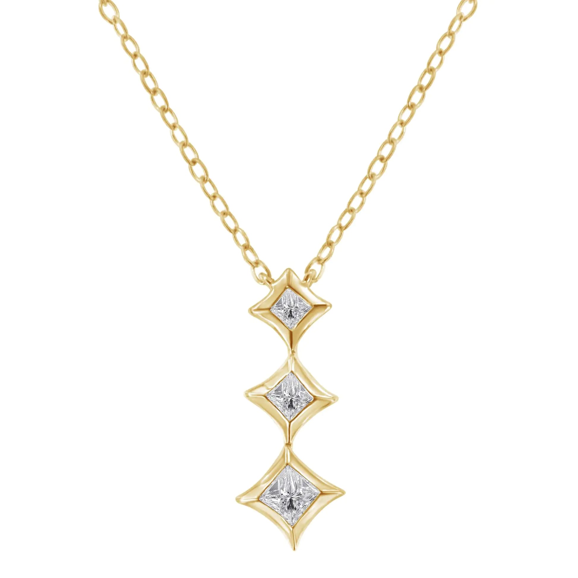 10K Gold 1/5 Cttw Princess Cut Diamond 3 Stone Drop 18" Pendant Necklace (H-I Colour, SI2-I1 Clarity)