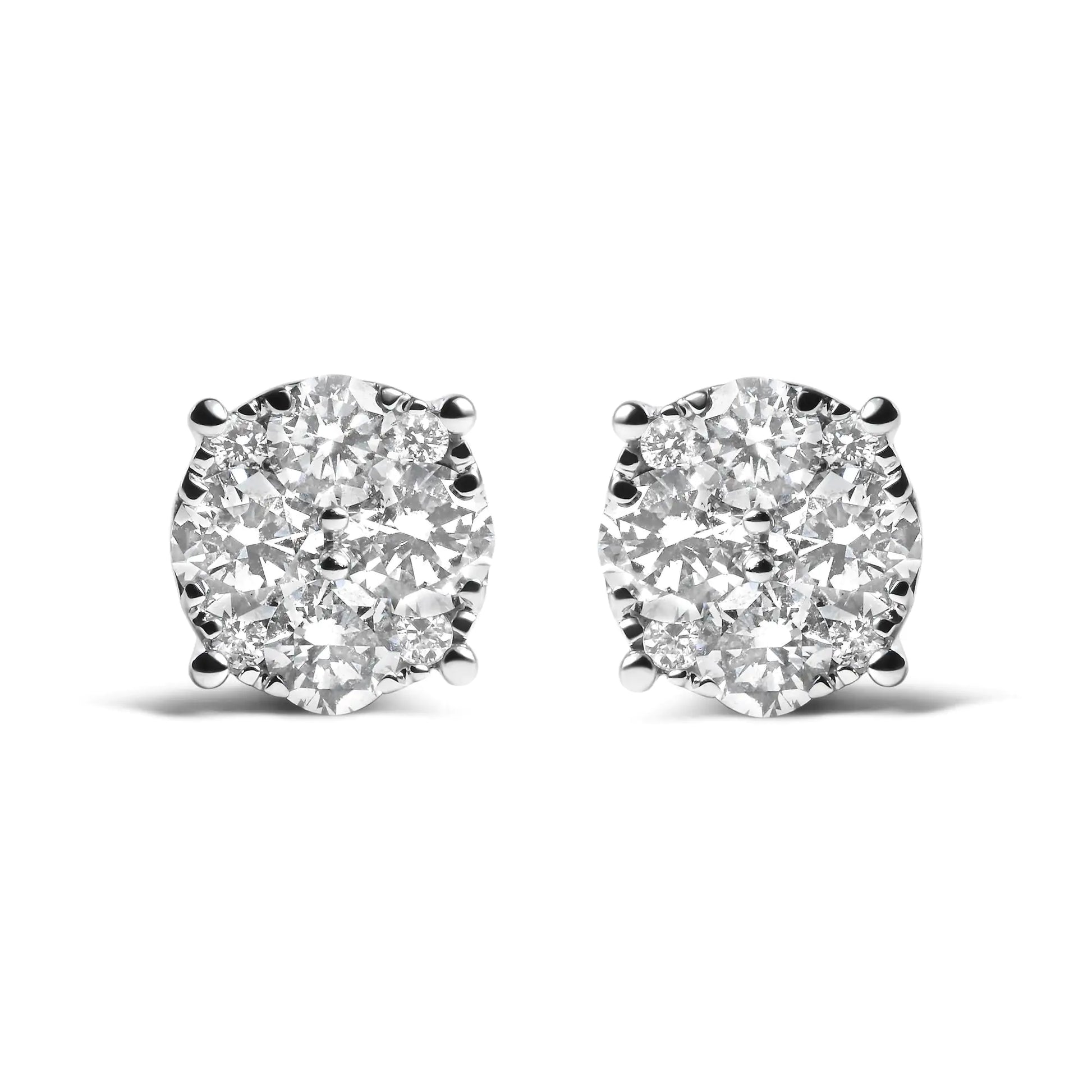 14K White Gold 2.00 Cttw Lab Grown Diamond Cluster Stud Earrings (G-H Color, VS1-VS2 Clarity)