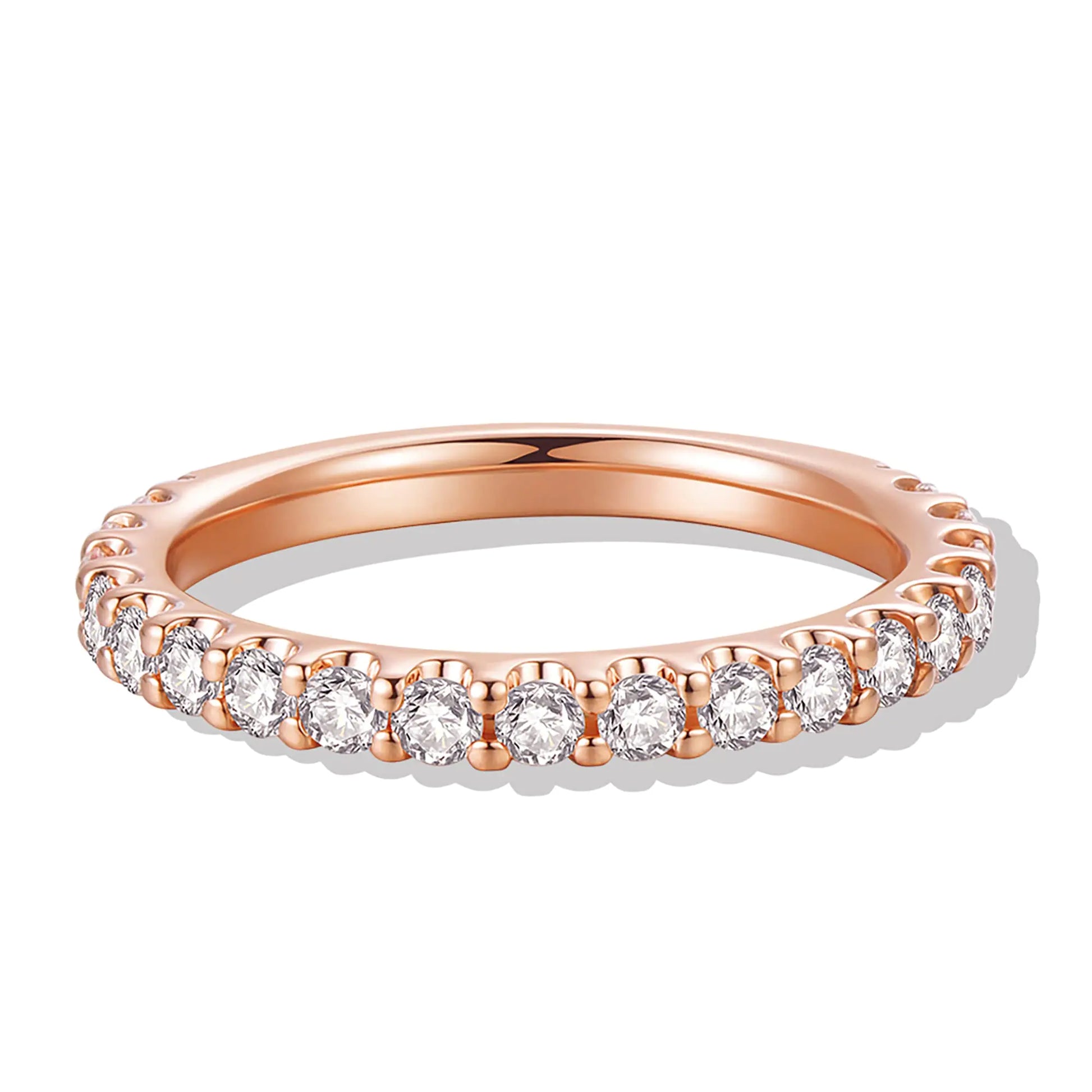HAFEEZ CENTER 14K Gold Moissanite Wedding Band for Women 14K Solid Gold Rings for Women 2.5mm Eternity Moissanite Wedding Band (Rose-Gold 7)