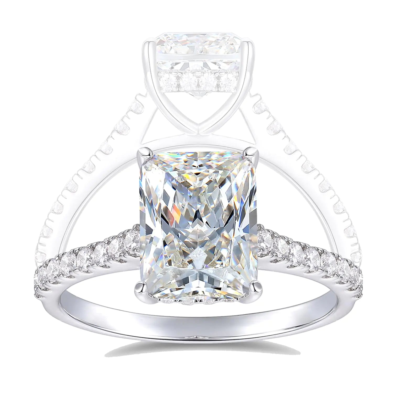 Description 14K Solid White Gold 3ct Radiant Cut Moissanite Engagement Rings for Women D Colour VVS Moissanite Ring