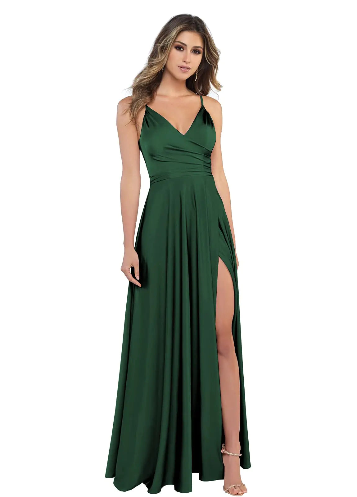 Fabric: Satin Neckline: V Neck Silhouette: A-Line Feature: Spaghetti Strap Pleated Ruched Slit Split Built-in Bra Back: Lace Up Occasion: Wedding Party Prom Party Other Formal Evening Party Dress If you want to custom the dress please complete the format when placing the order.1. Full Bust _____ inch2. Waist _____ inch3. Hips _____ inch4. Hollow to hem ___ inch5. Natural height:_____inch6. Heels Height_____inch7. Phone Number______8. Accurate date you need the dress_____